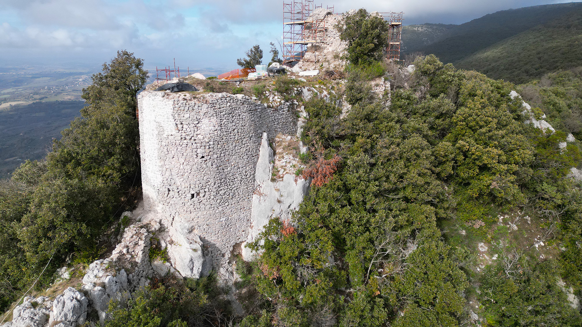 “Come una collana di fiori primaverili” - Perfino dalla città, da Terni, ora, se si alza lo sguardo dall’asfalto e dagli schermi degli smartphone verso l’inconfondibile silhouette delle rocce del monte Eolo e di sant’Erasmo, si possono vedere dei piccoli puntini bianchi proprio sullo sperone. Prima sembravano non esistere più, crollate, dimenticate, mangiate dal bosco; ora quasi per magia sono di nuovo lì, le possenti torri della rocca, sbocciate come una collana di fiori primaverili tra i boschi. Non è una magia, ma è il risultato di un lavoro duro e complicato. E quelle torri, di nuovo forti e solide sono ricomparse anche per dirci che qualcosa d’importante sta succedendo sulla montagna, grazie al progetto “Cesi Porta dell’Umbria” che sta entrando nel vivo.